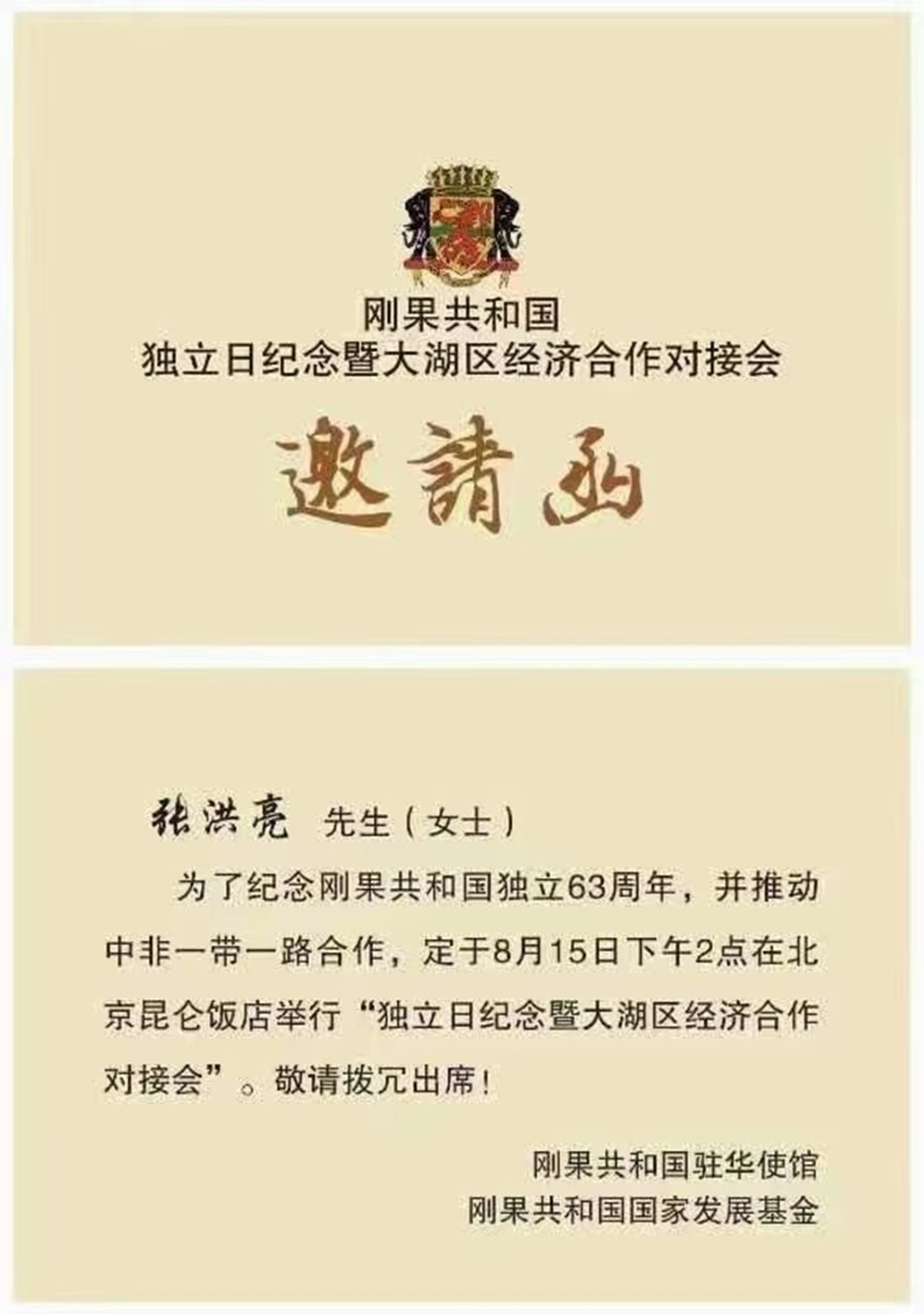 宏麗板業(yè)創(chuàng)始人張宏亮受邀出席一帶一路剛果經(jīng)濟(jì)發(fā)展對(duì)接會(huì)。